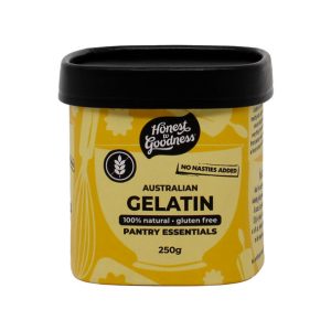 Our Australian Gelatin Powder is a natural source of protein that helps to support healthy skin, hair, nails and digestion. Commonly used as a natural setting agent, it transforms liquids into gel and can be used in recipes like jellies, gummies, desserts and soups. Sourced from pasture-raised, grass-fed beef, this gelatin powder has a bloom strength of 125, ideal for creating a soft, smooth set.