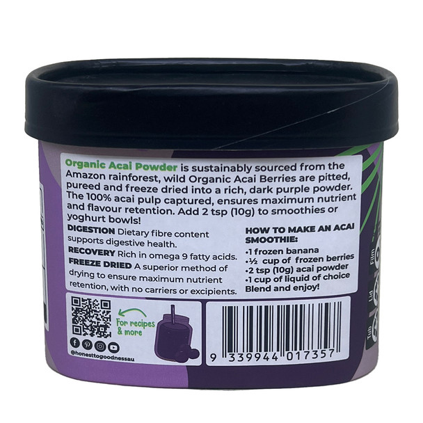 Honest to Goodness Organic Acai Powder is a nutrient powerhouse loaded with antioxidants, omega fatty acids, essential nutrients and dietary fibre.