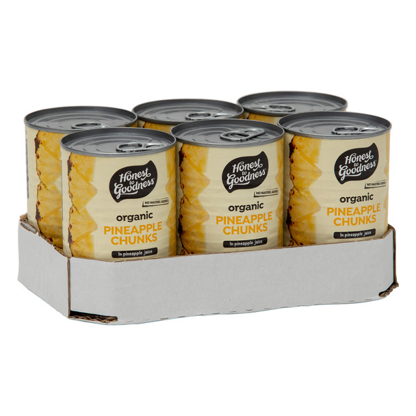 Honest to Goodness Organic Pineapple Chunks are pure deliciousness! Naturally sweet with no added sugar and no artificial preservatives or flavours. Just pure pineapple perfection!